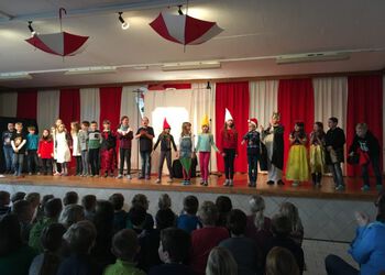 Die Rollen wurden gemeinsam verteilt und alle Kinder sind mit Freude dabei. Sie lernen fleißig Texte, versetzen sich in ihre Rolle hinein, müssen sich ihren Einsatz merken, kümmern sich um Requisiten und Bühnenbild und üben lautes und deutliches Sprechen.