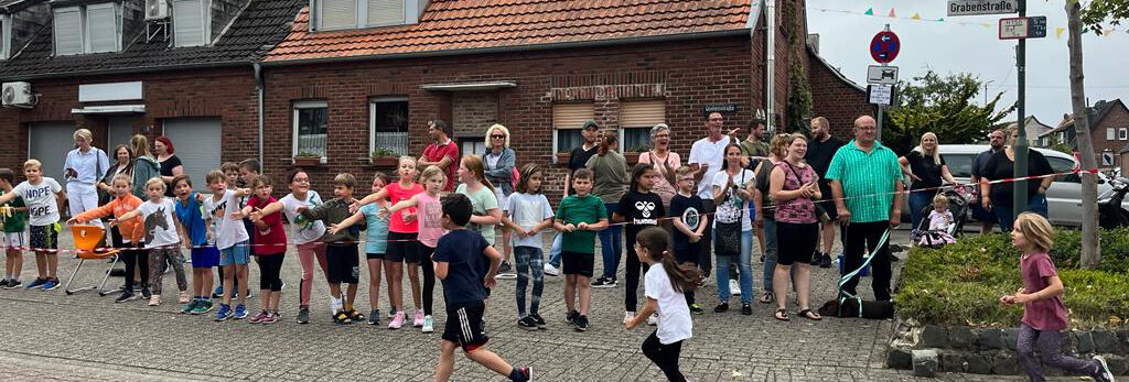Am 26. August fand unser Sponsorenlauf an der Schule statt. Dazu hatten die Kinder im Vorfeld in der Familie, bei Freunden und Nachbarn nach Sponsoren gesucht. Entsprechend starteten die Kinder hochmotiviert und erliefen so Runde für Runde Spendengelder für unser anstehendes Zirkusprojekt. Während des Laufs wurden sie von den Kindern anderer Klassenstufen, ihren Lehrkräften und zuschauenden Familien kräftig angefeuert. Wer eine Stärkung benötigte wurde von unserem Förderverein mit Unterstützung des REWE Jahnstraße mit Wasser und kleinen Snacks versorgt. Vielen Dank dafür!
